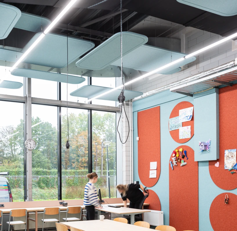 De overdracht van kennis is alleen optimaal wanneer leerlingen de leraar kunnen verstaan – en andersom natuurlijk. Daarom komt Akovision graag langs om geluidsmetingen in de klaslokalen van jouw school te maken. Op basis daarvan komen we met een oplossing die effectief is én tegen een stootje kan. Bijvoorbeeld akoestische wandpanelen, al dan niet bedrukt, of akoestische plafondpanelen.
