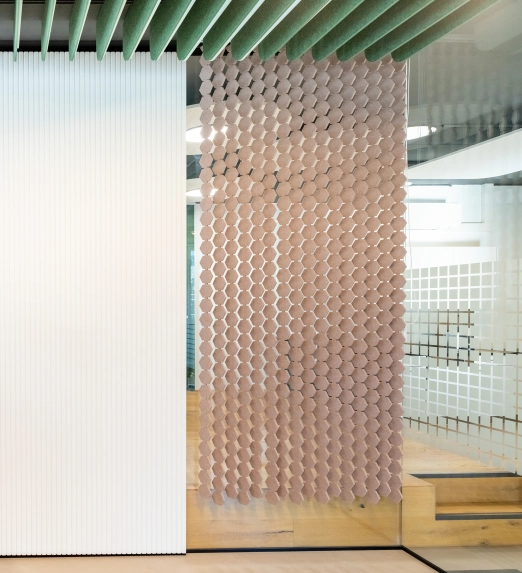 Deze akoestische roomdivider biedt een afscheiding, maar blokkeert het zicht niet geheel. In plaats daarvan creëert het een prettige visuele barrière die gemakkelijk kunnen worden bevestigd aan bestaande wand- en plafondstructuren. Ontdek hoe Pixels, een intrekbaar ruimteverdelingssysteem, ruimtes transformeert met flexibiliteit en akoestische precisie. Ervaar de kracht om dynamische omgevingen te creëren die zich aanpassen aan elk moment.