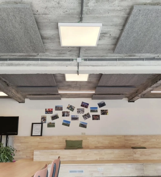 Door de hoge geluidabsorptie-waarden wordt een betere akoestiek gecreëerd in ruimten waar nagalm (reflectie van geluid) een probleem vormt.Duro is het esthetisch verantwoorde alternatief als je op zoek bent naar een akoestische oplossing, simpel, strak en effectief. Van gerecyclede PET flessen worden polyestervezels gemaakt met als eindresultaat een stabiele, oersterke en vormvaste polyesterwol paneel.