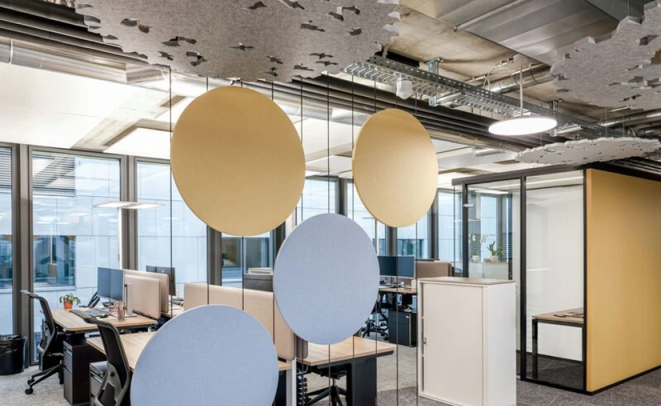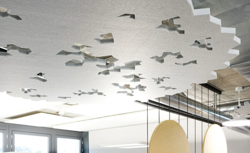 Breng het buitenleven dichterbij met een combinatie van Forest akoestische plafondpanelen, die lijken op de boomtoppen in het bos. De perforaties dragen bij aan de authenticiteit van het ontwerp. Wanneer ze worden gevangen door het juiste licht, verschijnen er speelse schaduwen vergelijkbaar met wat er zich in de natuur afspeelt.