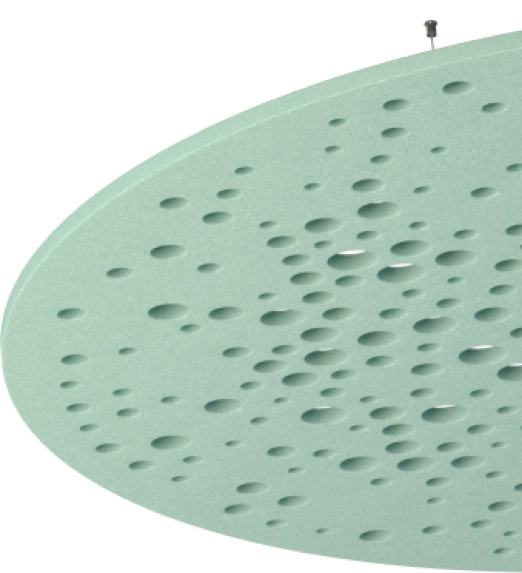 Een andere kijk op het standaard, ronde plafondpaneel. Dit ontwerp bevat ronde bubbelvormige perforaties die bijdragen aan een spannende en dynamische uitstraling.