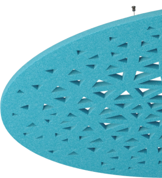 Een andere kijk op het standaard, ronde plafondpaneel. Dit ontwerp bevat webvormige perforaties die bijdragen aan een spannende en dynamische uitstraling.