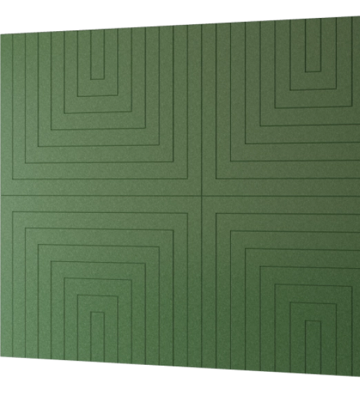 Maya is bedekt met talloze rechthoekige ornamenten en voegt contrast toe aan interieurs die een subtielere rol spelen. Zo verbetert dit akoestische wandpaneel de ruimteakoestiek en verhoogt het de visuele uitstraling met een extra vleugje lef.
