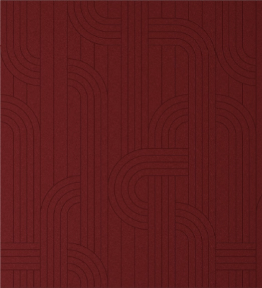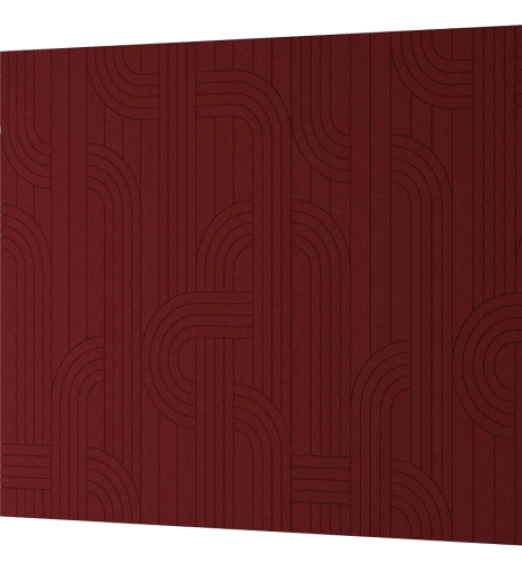 Een regelmatig maar speels patroon siert deze akoestische wand, een opeenvolging van rondingen en lijnen zoals die in de urban design voorkomen.